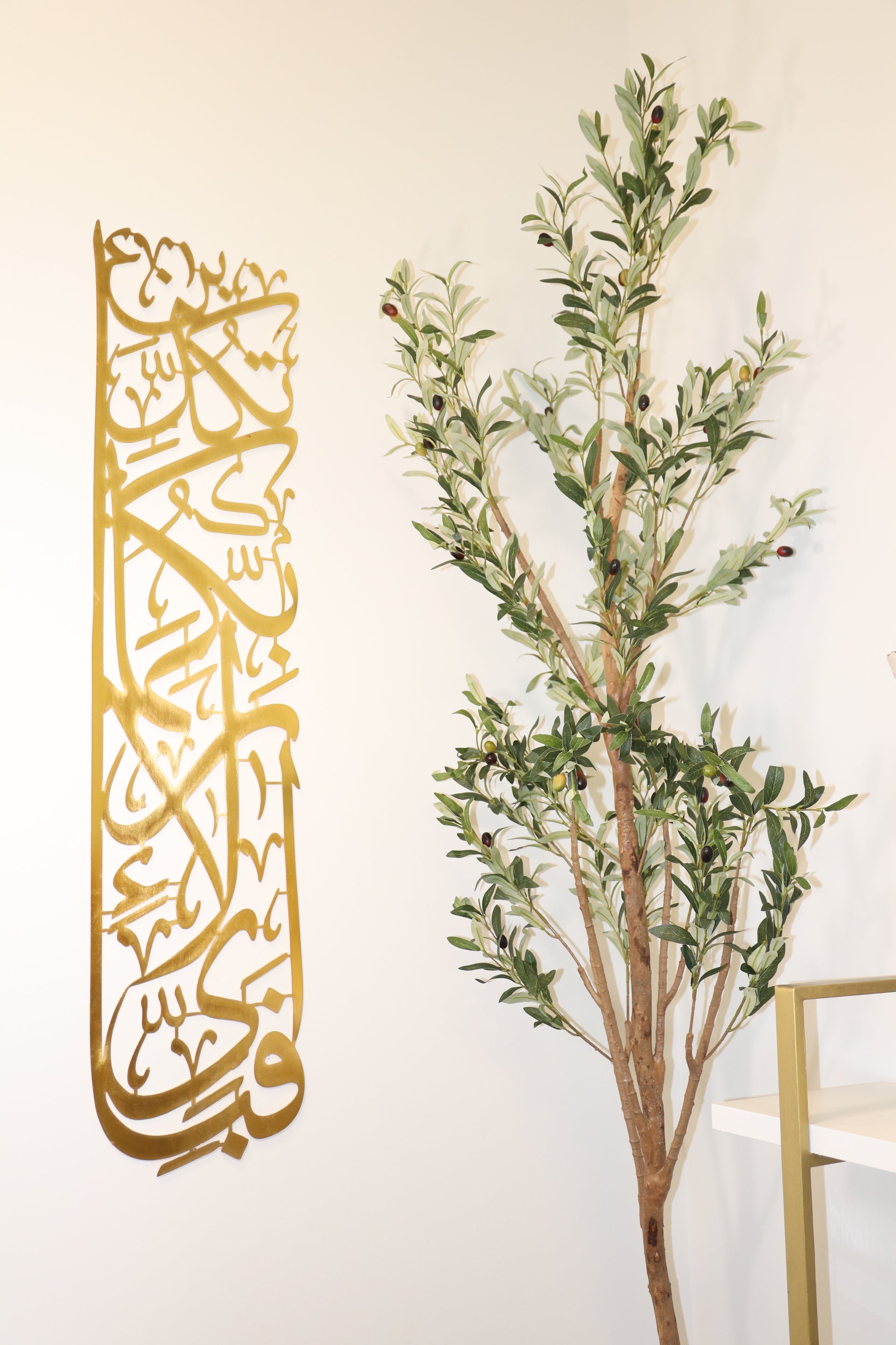Elevate your home decor with the "Majestic Script Wall Adornment," a harmonious blend of traditional artistry and contemporary style. This stunning piece features fluid Arabic calligraphy in a rich gold finish that captures the eye and the imagination. Designed to create a focal point in any room, it's perfect for those who appreciate the artful elegance of Arabic script and the serene beauty it can bring to their living space.