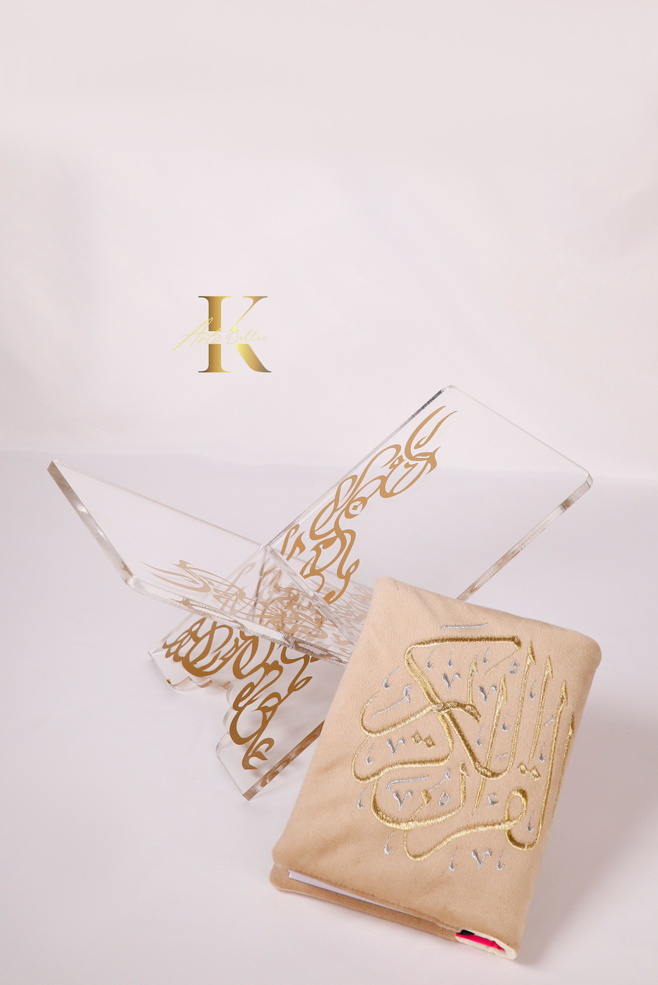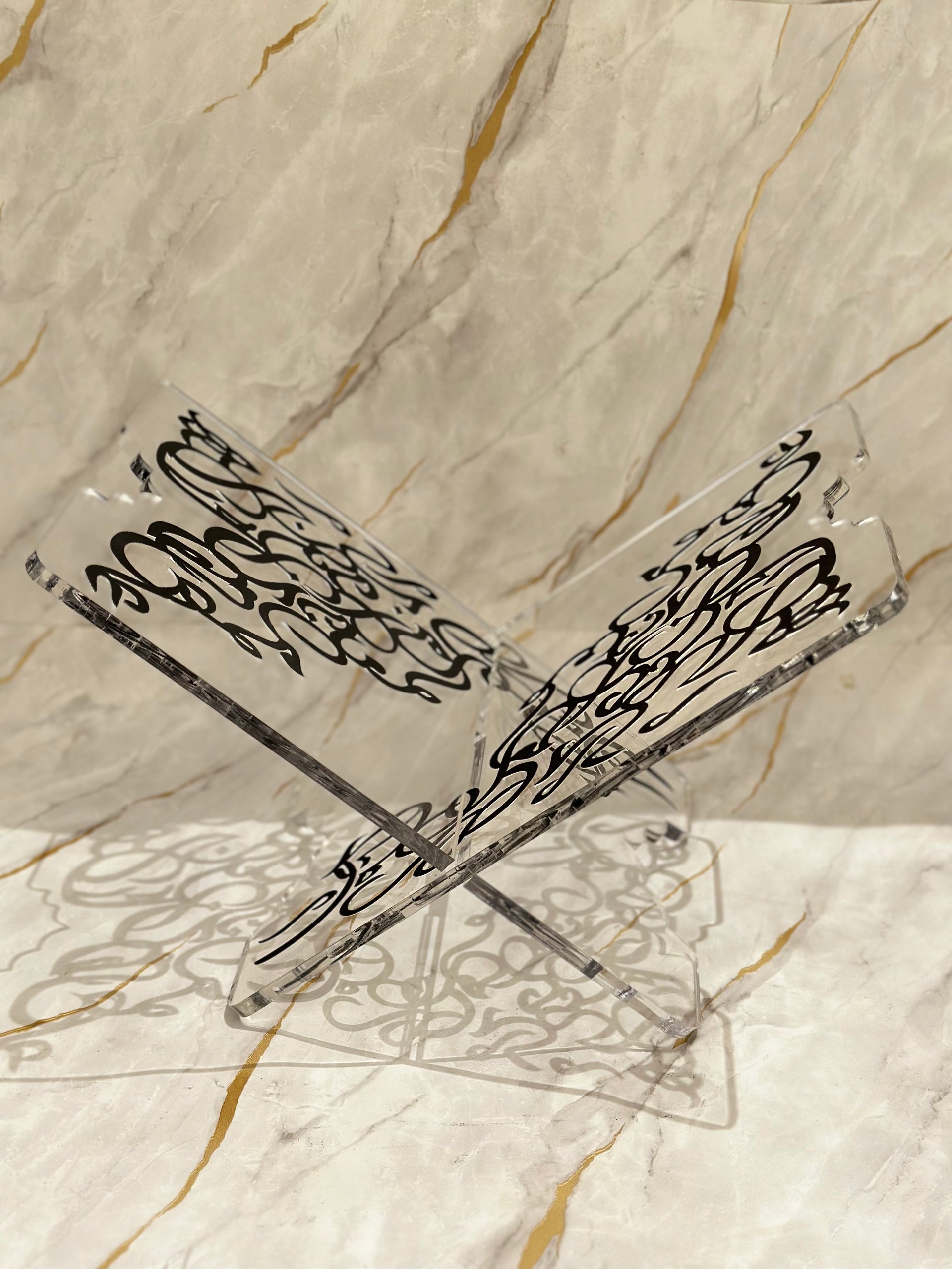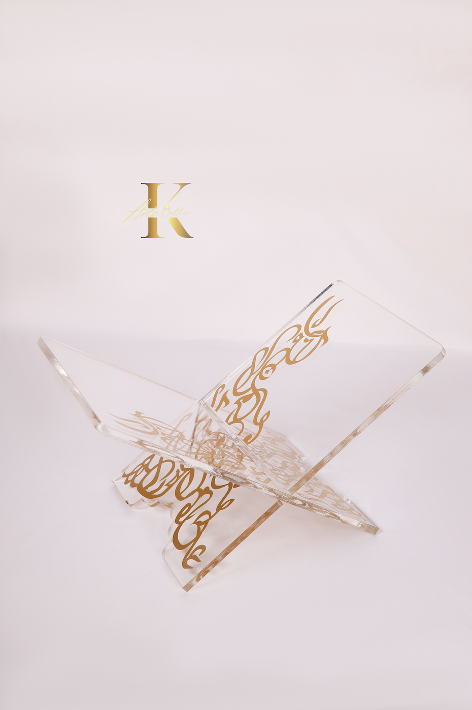 Introducing our Artisan Quran Stand, a fusion of elegance and devotion. Featuring a clear base with intricate Arabic calligraphy in striking black or radiant hammered gold, it offers a sacred setting for the Quran. Whether for personal reflection or as a decorative centerpiece, this stand enriches your spiritual space with timeless artistry.