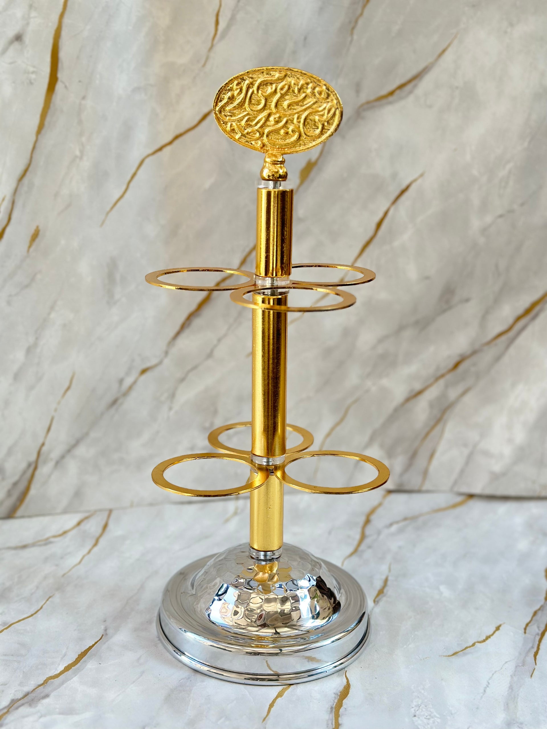 Crafted with precision and care, each holder showcases intricate Arabic calligraphy in captivating gold and silver hues, adding a touch of timeless beauty to your coffee routine. The elegant design not only complements your cups but also elevates your coffee experience to new heights.