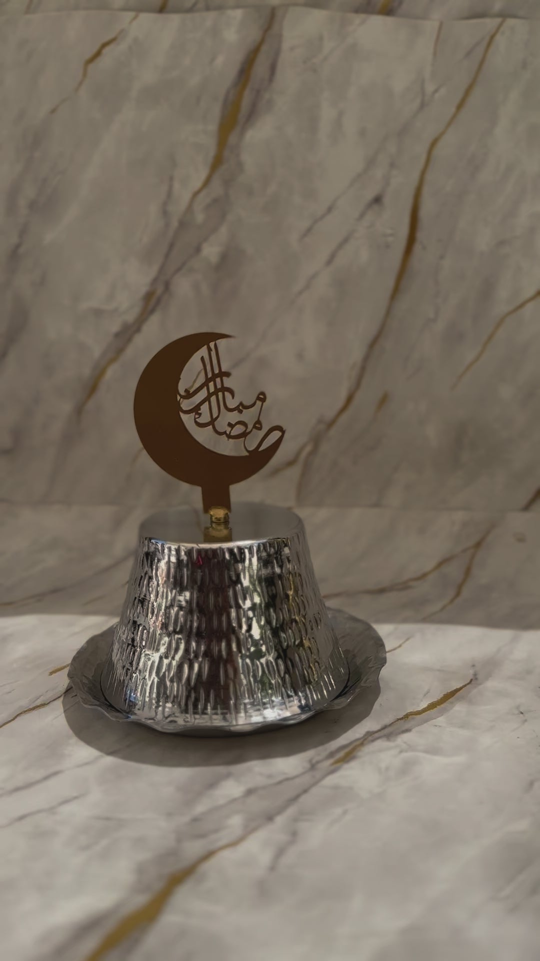 This Ramadan, serve your dates and chocolates with a cultural twist on our Tarboush-Inspired Metal Plate. Elegantly crafted with a reflective finish, this plate features a crescent and calligraphy that evokes the spirit of the holy month.