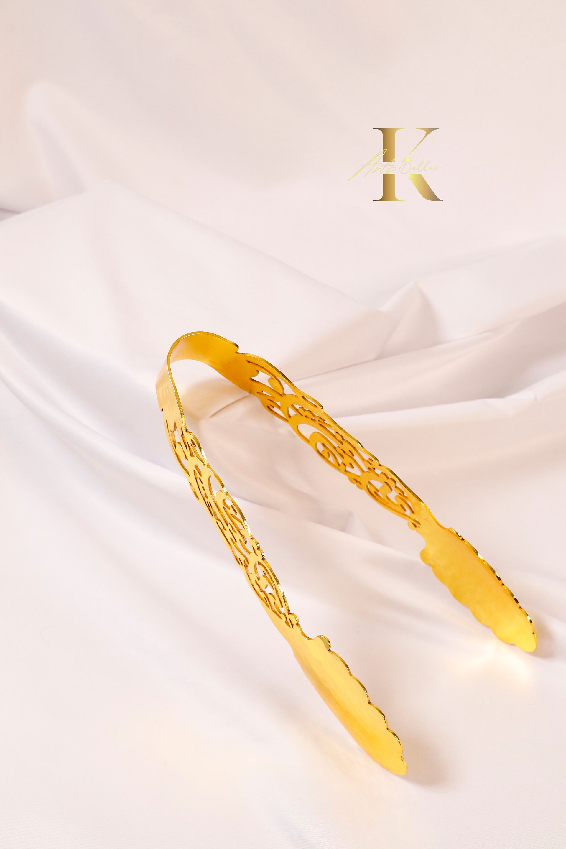 Elevate your serving experience with this handmade gold-plated copper tong, designed with intricate Arabic calligraphy. This elegant piece combines functionality with cultural artistry, making it perfect for special occasions, formal dining, or as a luxurious gift.