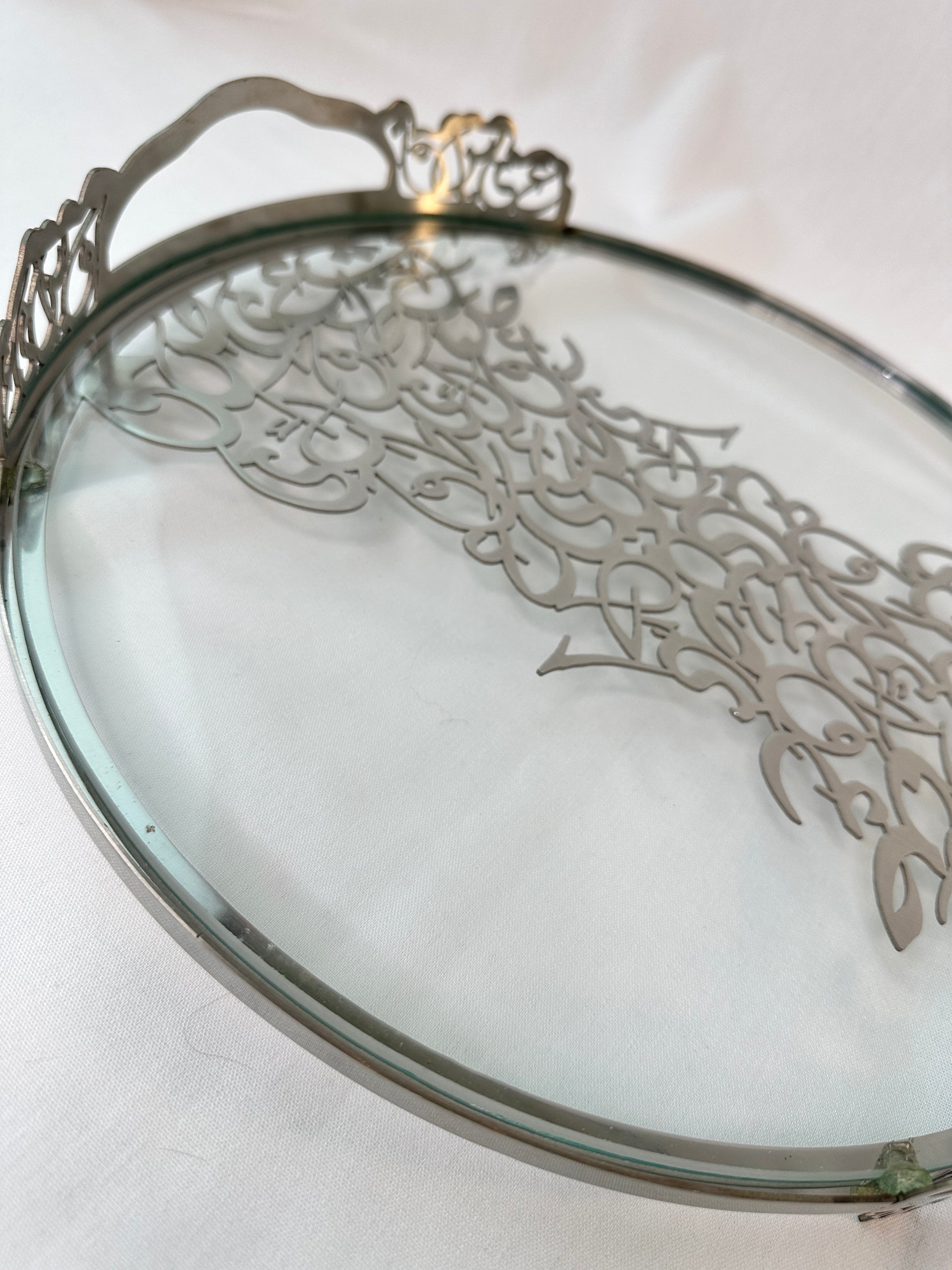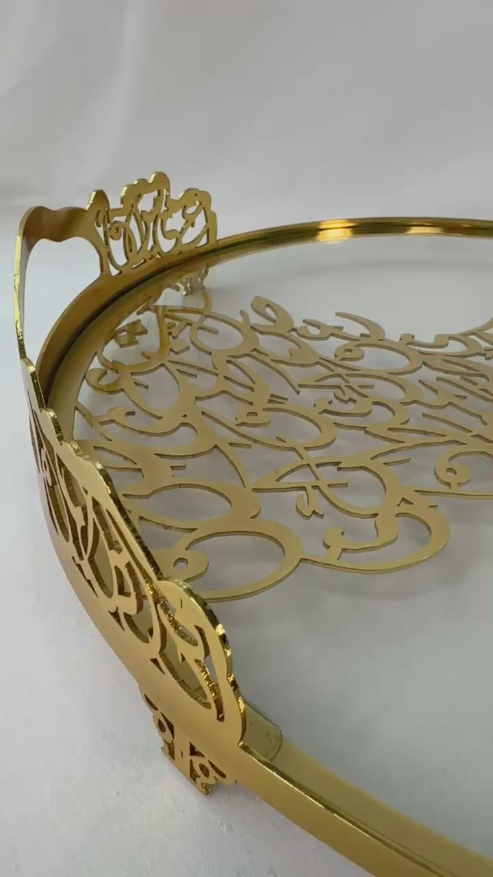 Luxury Arabic Calligraphy Tray | Gold & Silver Serving Tray | Islamic Home Decor | Elegant Gift | Covered Glass