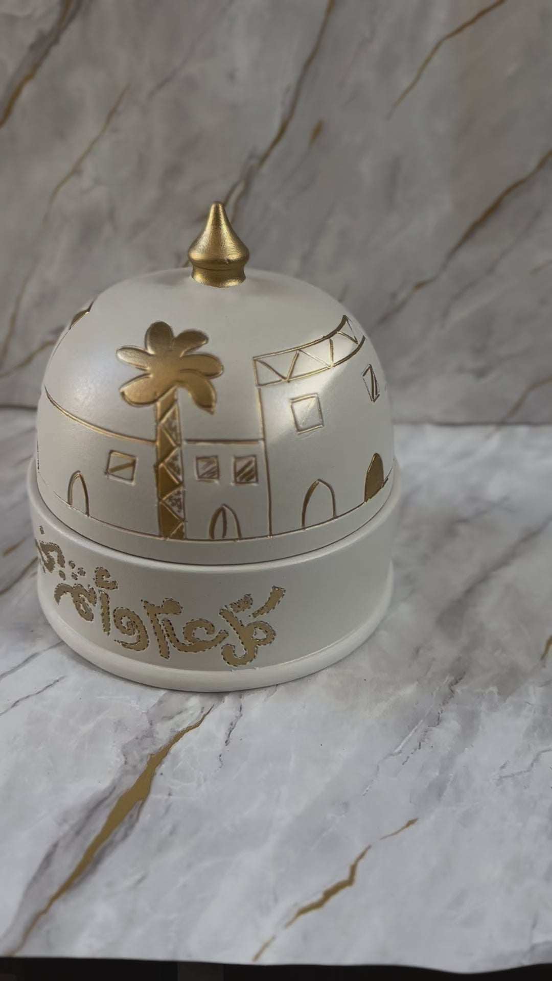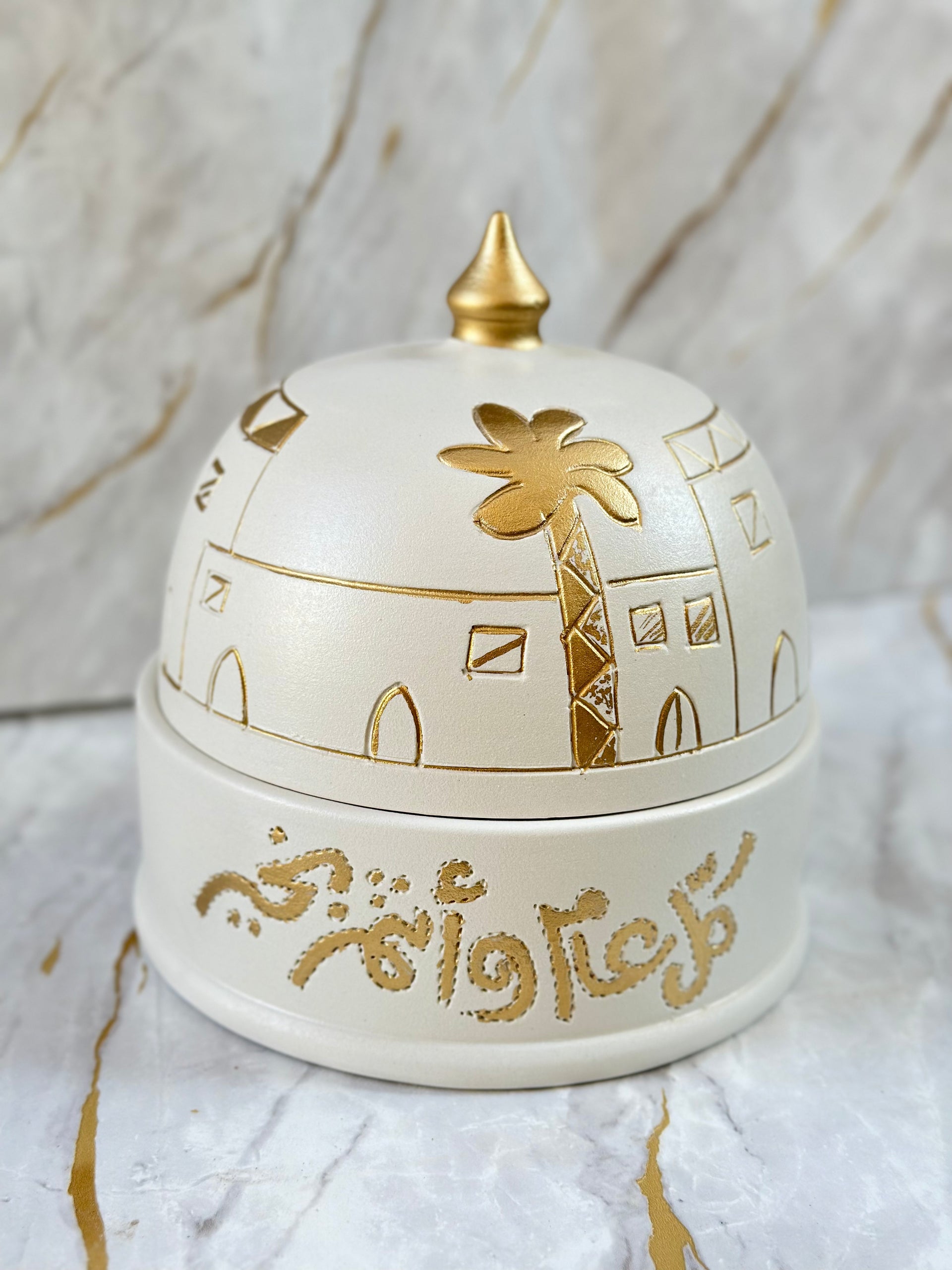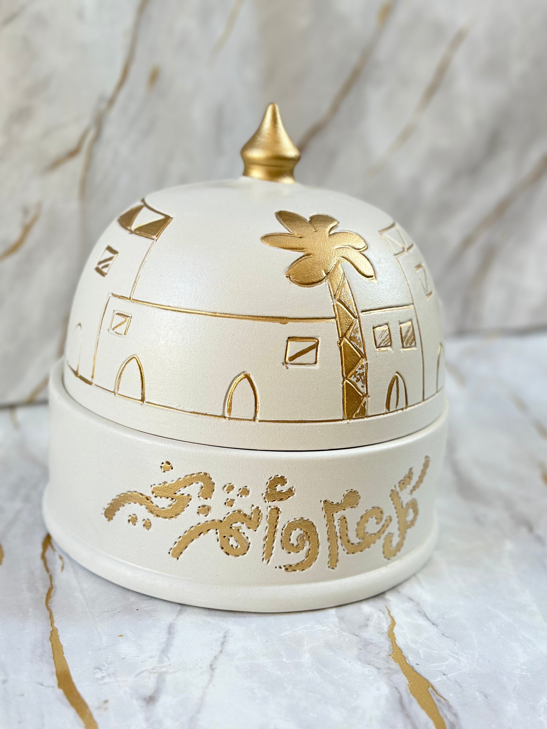Impress your guests with our Handmade Ceramic Eid Chocolate Bowl, beautifully crafted with traditional gold calligraphy and intricate patterns. Whether used for serving chocolates or as a statement decor piece, it embodies the spirit of Eid with grace and elegance.