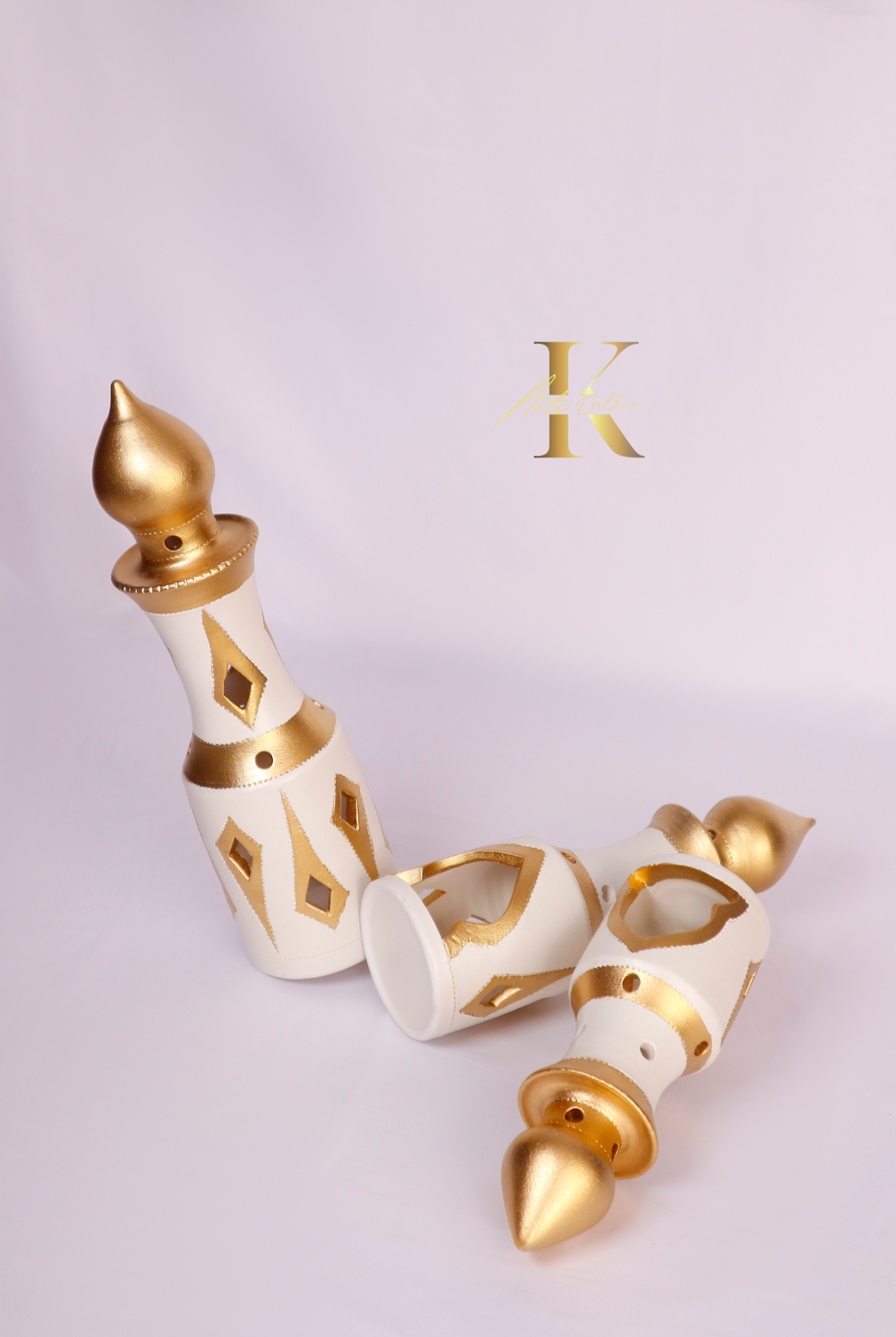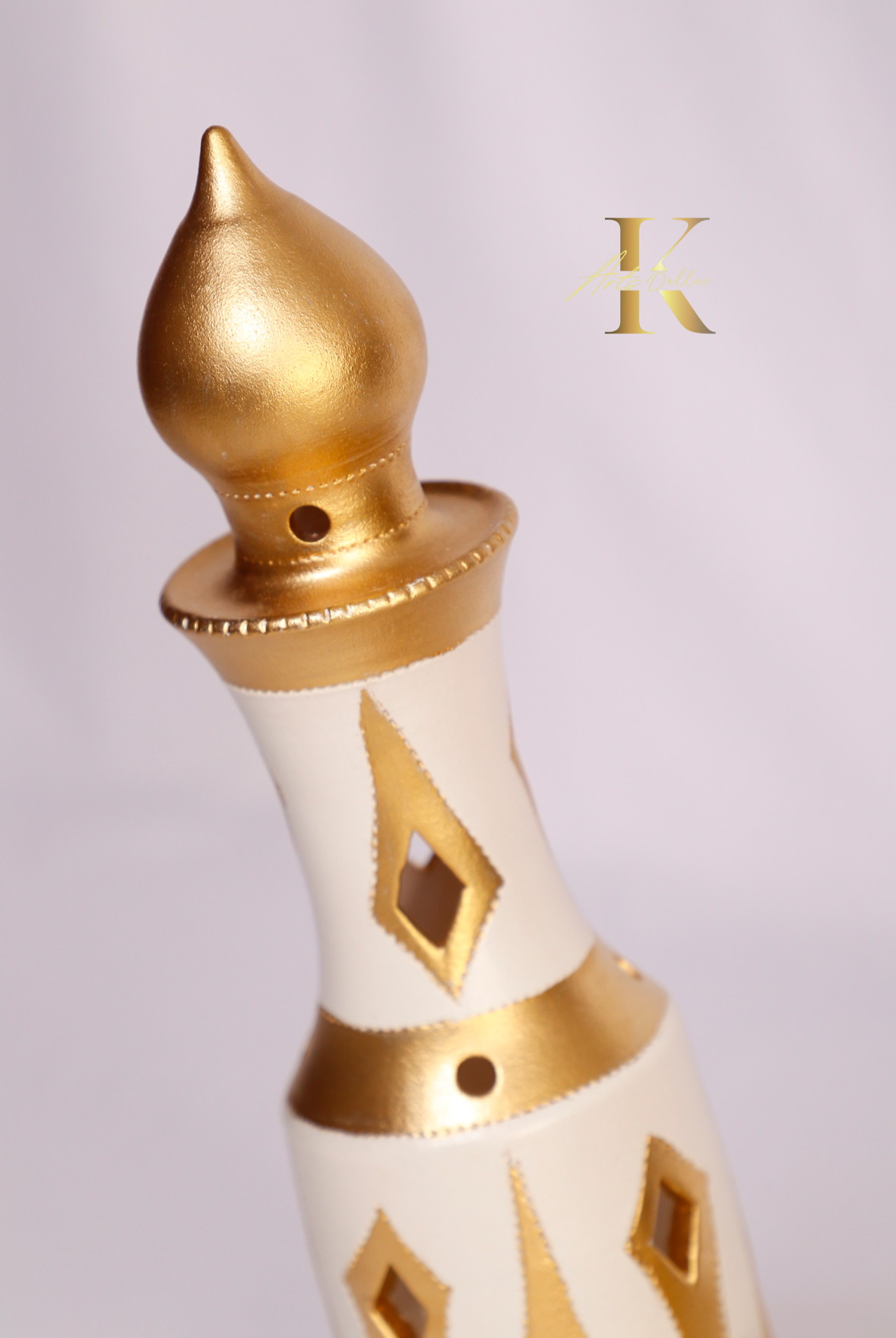 Add a sophisticated and cultural touch to your décor with this stunning trio of handcrafted ceramic lanterns. Featuring elegant cut-out patterns and finished with luxurious gold accents, these lanterns are inspired by timeless Islamic architecture. Their versatile size and design make them perfect for enhancing any space with a warm and inviting ambiance.