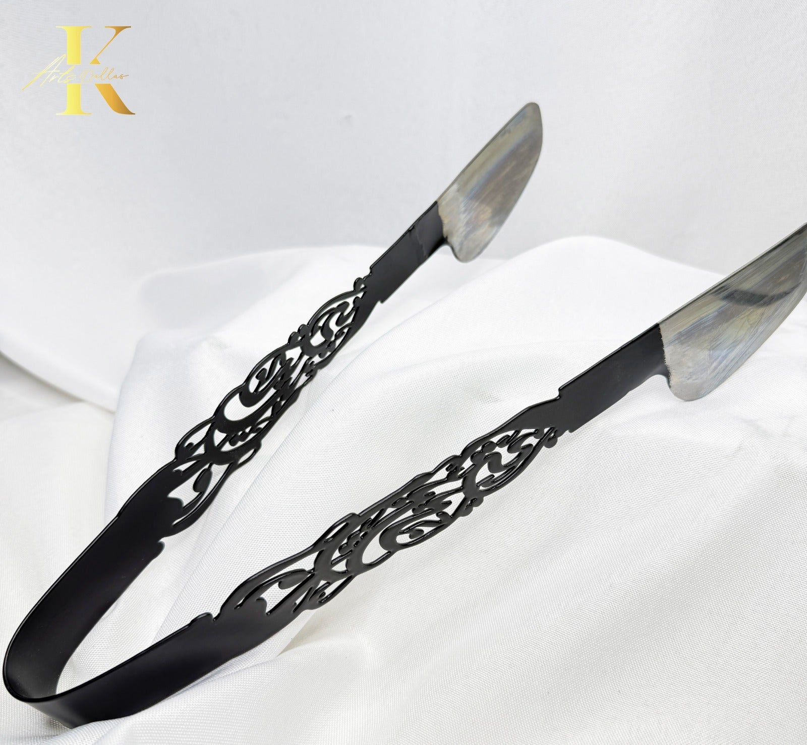 Crafted from high-quality stainless steel with a sleek black finish, the tongs are designed for durability, comfort, and effortless use. The smooth gripping ends allow for easy serving of desserts, pastries, dates, bread, or appetizers, while the artistic handle adds a touch of cultural elegance to your table.