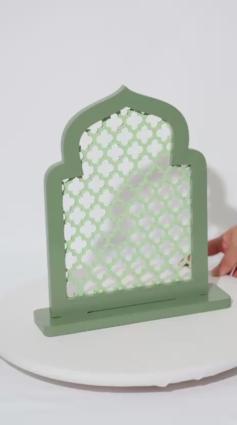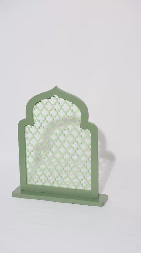Add a sense of calm and refined beauty to your space with this Arch Decorative Panel, inspired by timeless Islamic architectural forms and geometric detailing. The soft green tone paired with the delicate cut-out pattern creates a serene, airy presence that enhances any room.